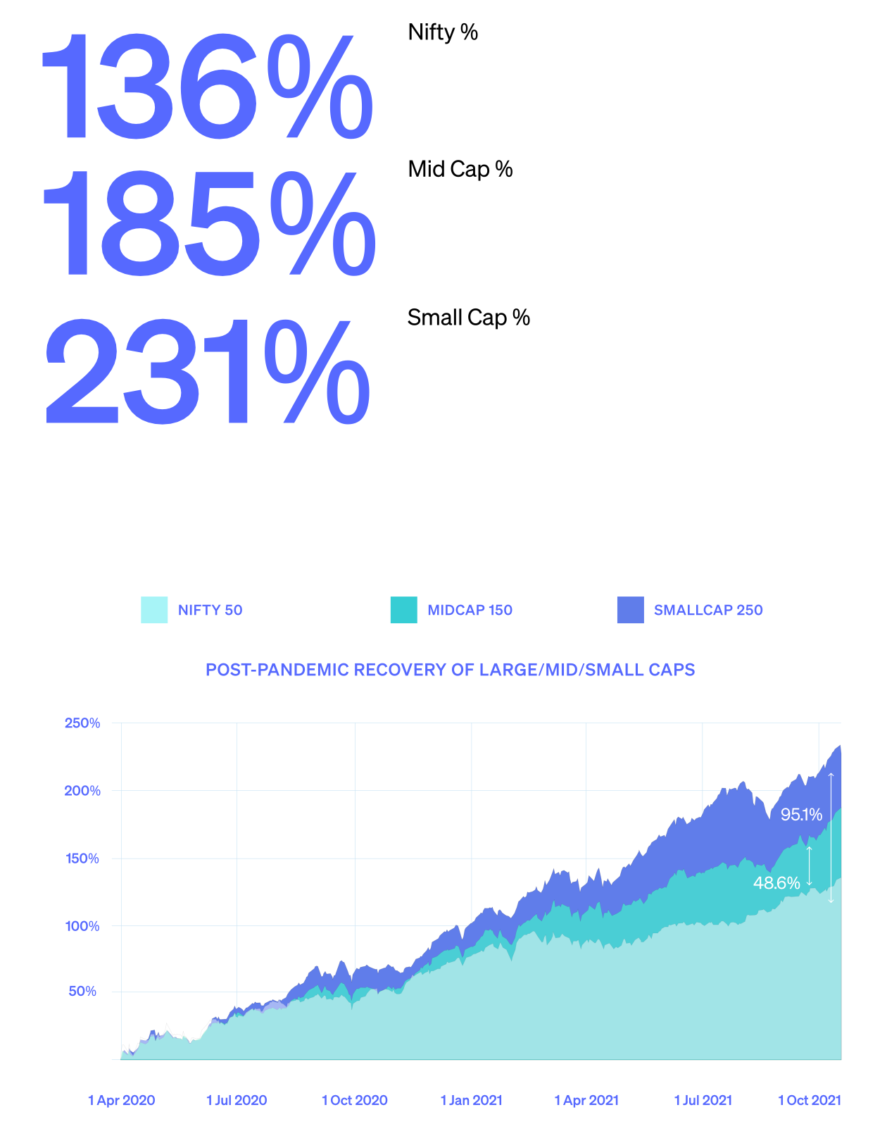 Large-cap stocks (Nifty 50) recovered by around 136%.