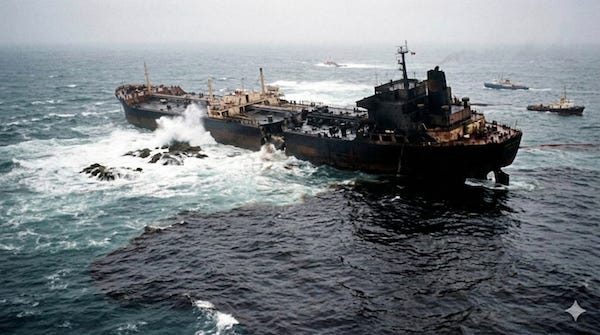 The ship’s hull had been punctured, and crude oil leaked into the seas.