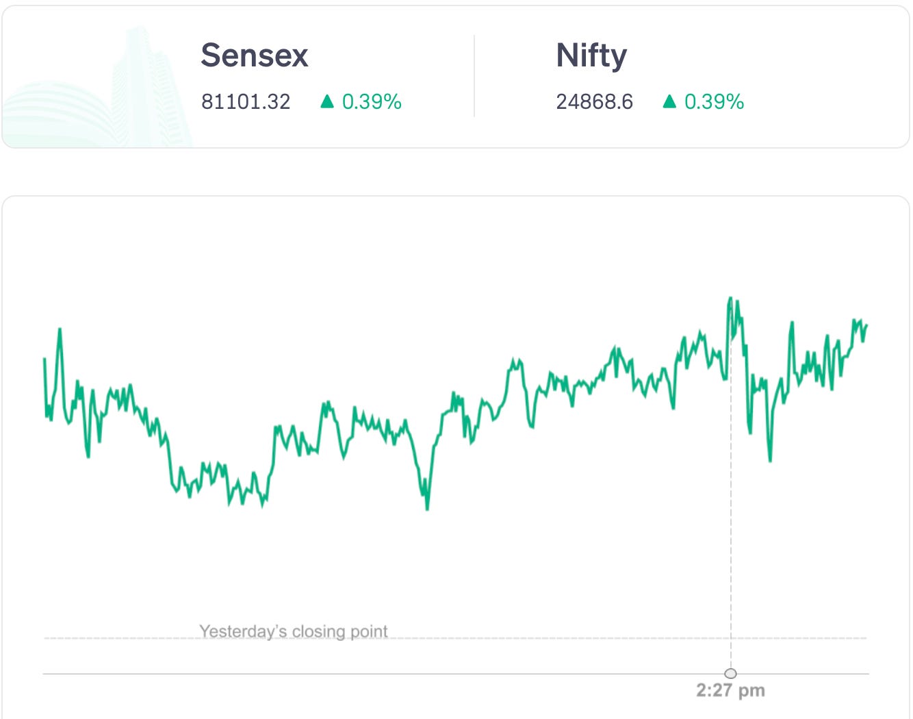 Nifty 50 stayed in a range and closed in green. The positive sentiment was mainly driven by a rise in large IT stocks.