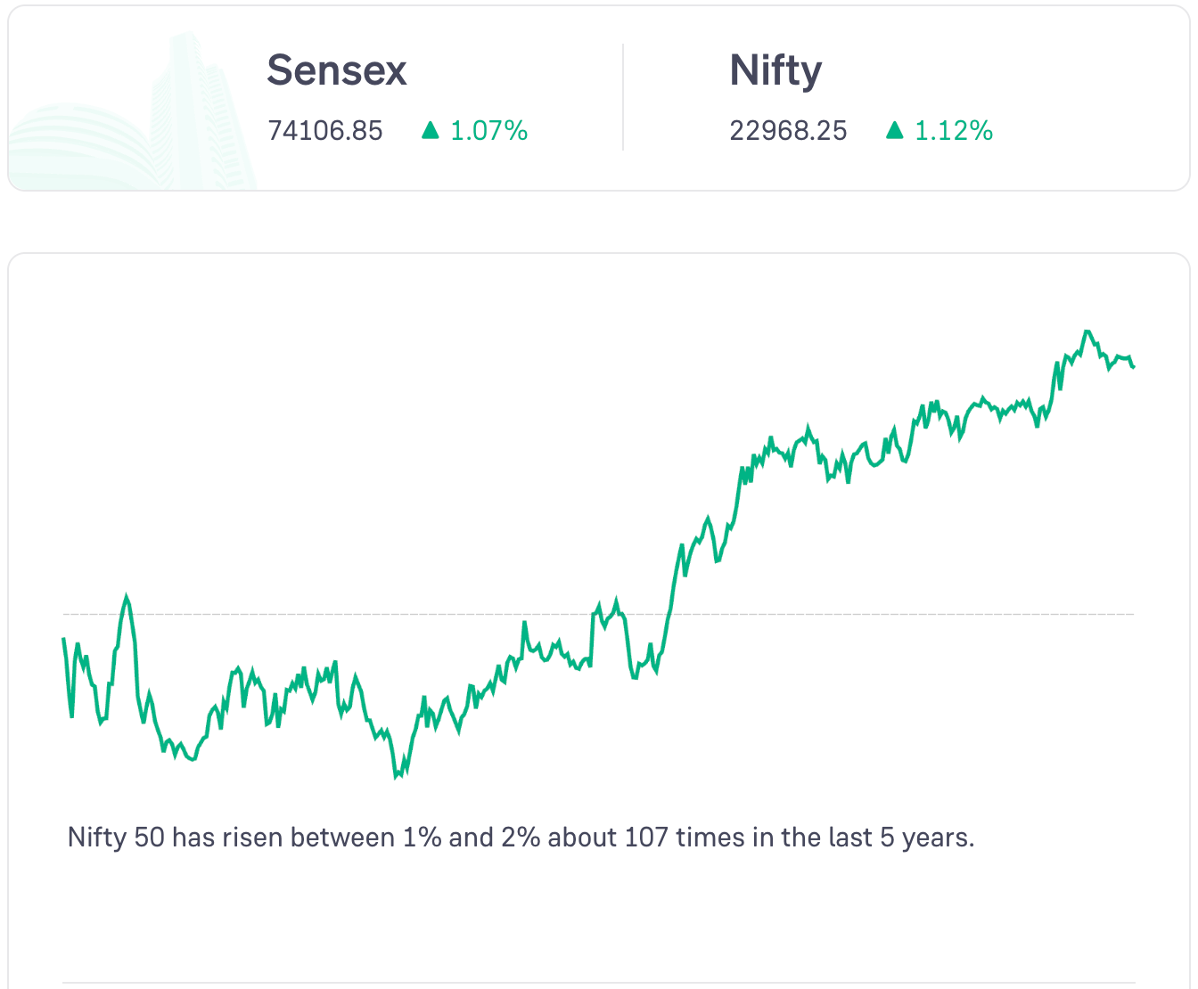 The Nifty 50 rose in the second half of the day and closed in the green.
