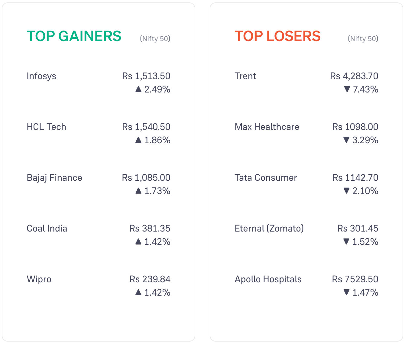 IT stocks and pharma stocks rose the most today. Media stocks and realty stocks fell the most.