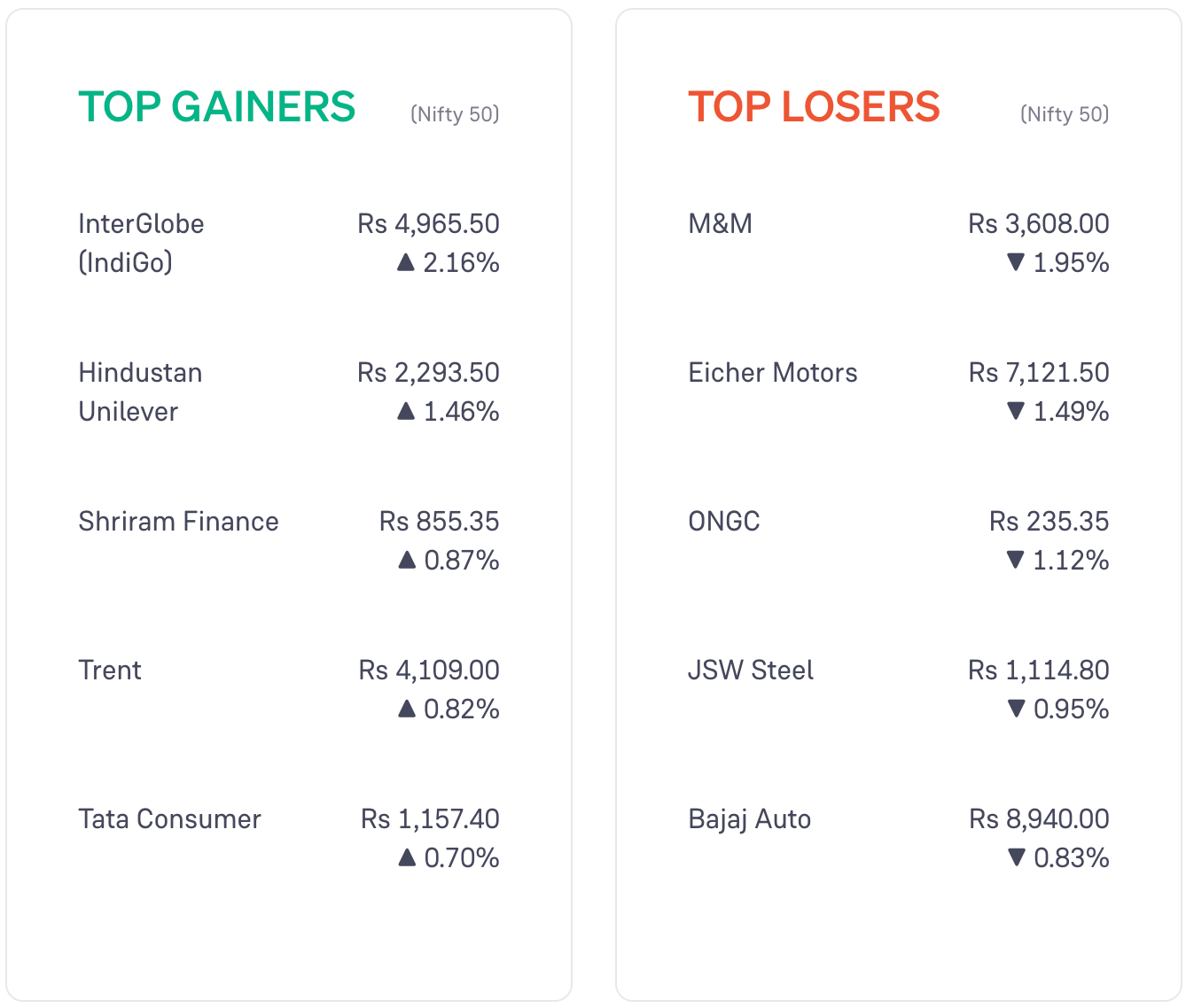 Media stocks and FMCG stocks rose the most today. Auto stocks and pharma stocks fell the most.