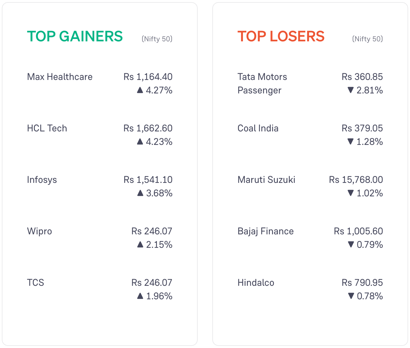IT stocks and PSU bank stocks rose the most today. Oil and gas stocks and realty stocks fell the most.