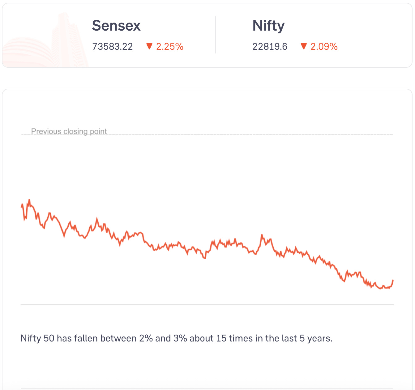 All sectors’ stocks fell today. PSU bank stocks and chemicals stocks fell the most.