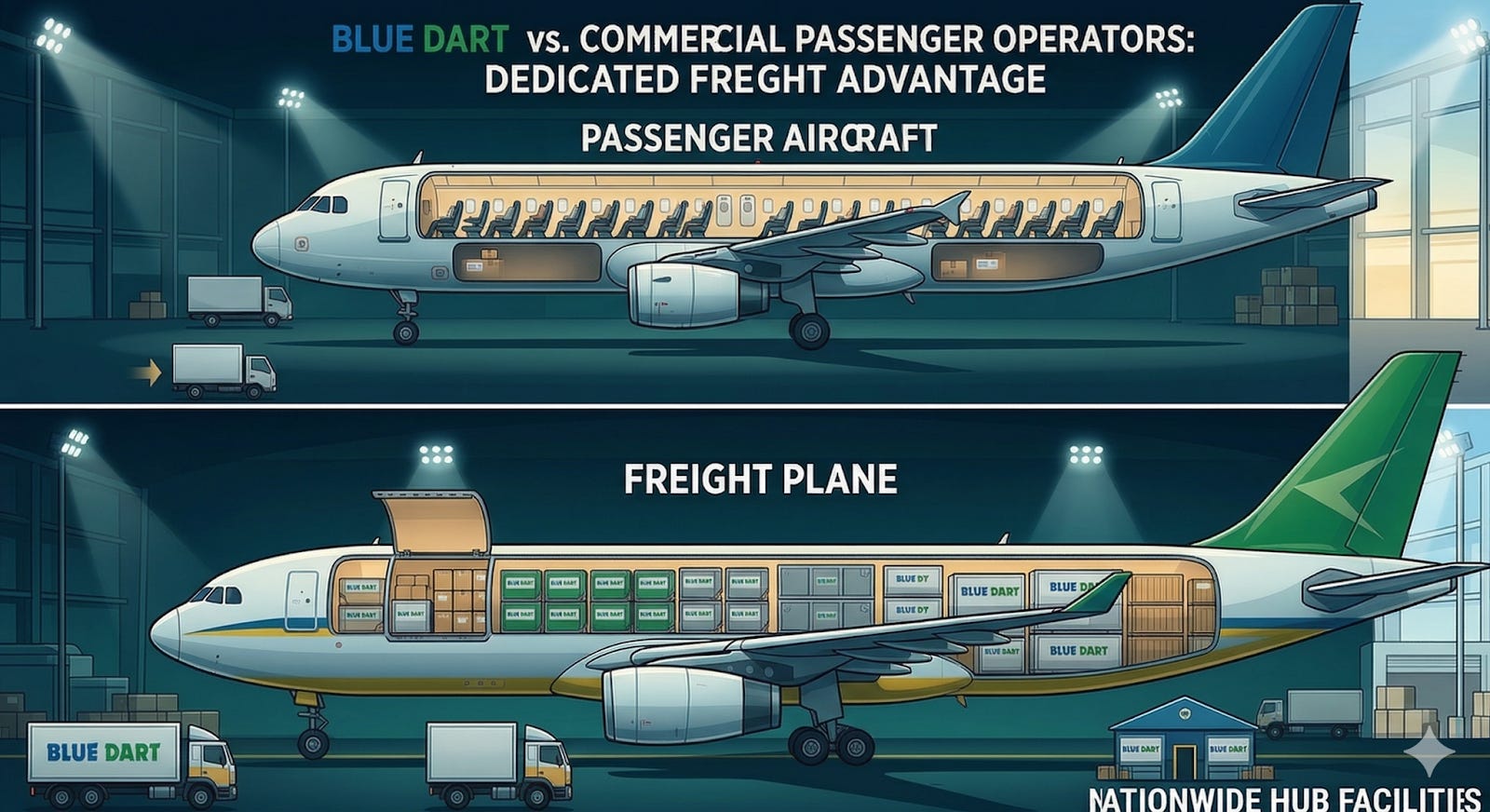 For a new cargo airline, competing with Blue Dart, building a comparable overnight network without access to these windows becomes extremely difficult.