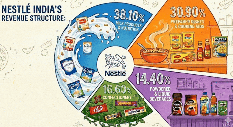 In India, concentration is far greater. The ‘Milk Products and Nutrition’ segment (which includes Cerelac, NAN, and Lactogen, along with other milk products), contributes close to Rs 8,000 crore annually, or nearly 38% of Nestle India’s revenue, with operating margins estimated between 21-23%.