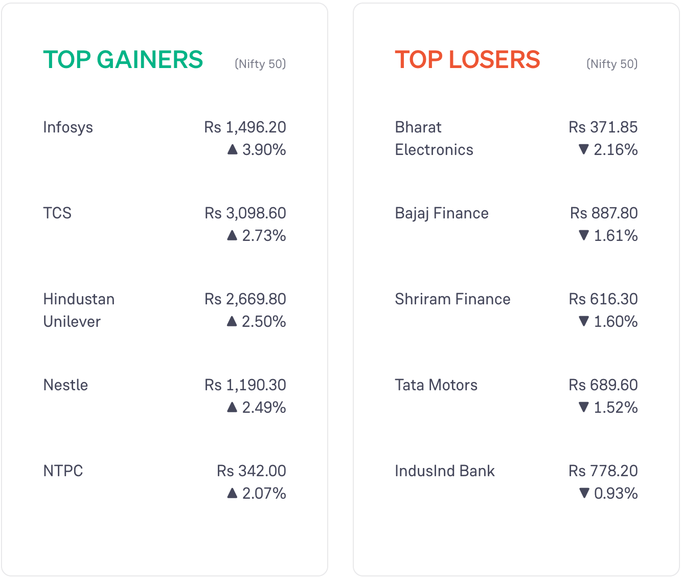 IT stocks and FMCG stocks rose the most. Media stocks and pharma stocks fell the most.