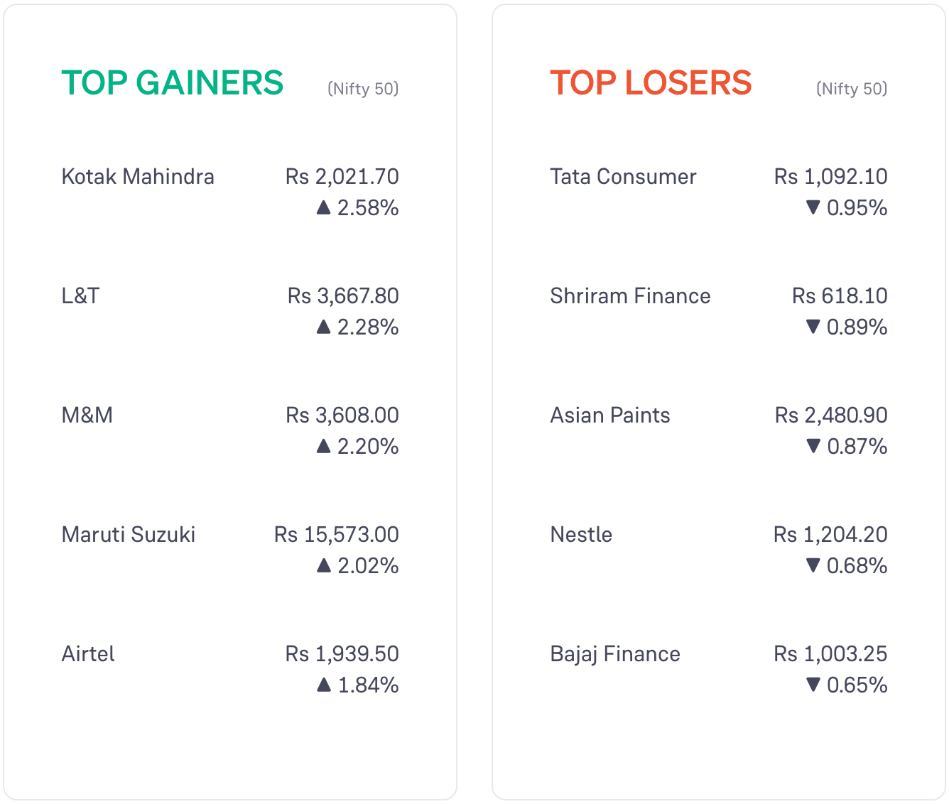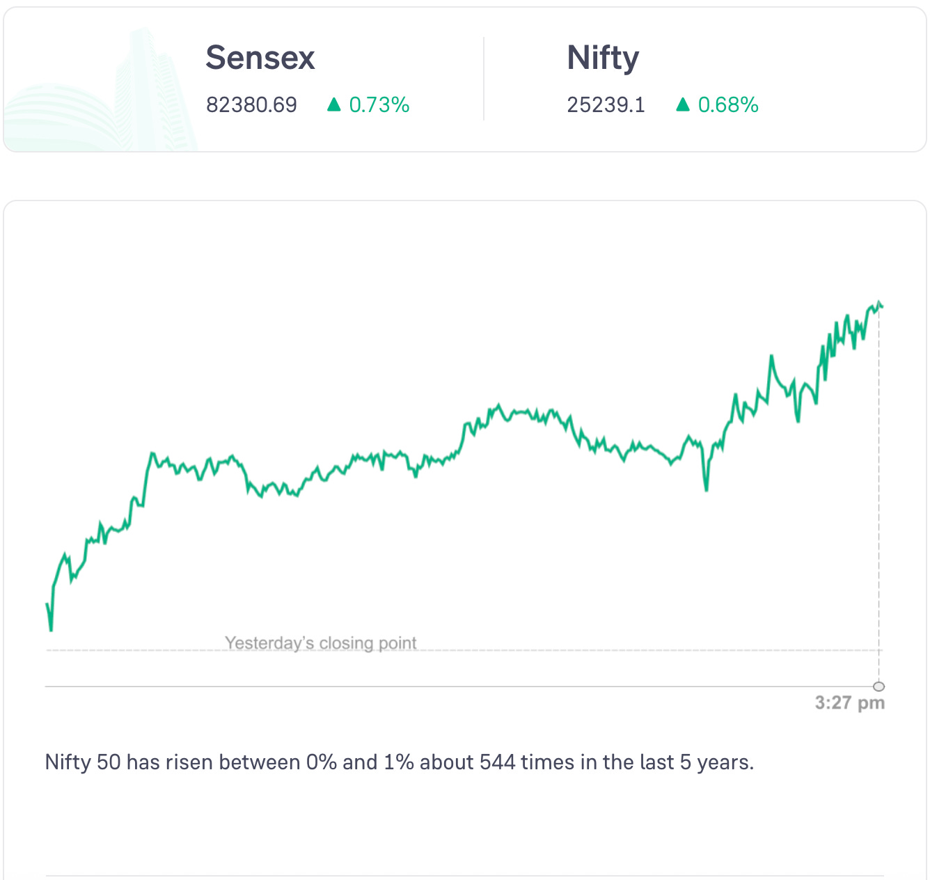 Nifty 50 rose throughout the day and closed in the green. The positive sentiment may have been driven by optimism over resumed India-US trade talks and expectations of a US Fed rate cut on 17 Sept.