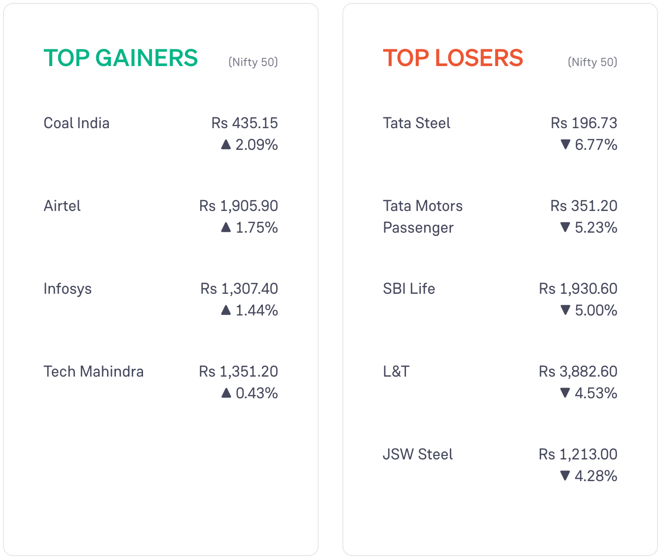 There are only 4 stocks in the Nifty 50 that rose today. Hence, there are only 4 stocks in ‘Top Gainers’ section.