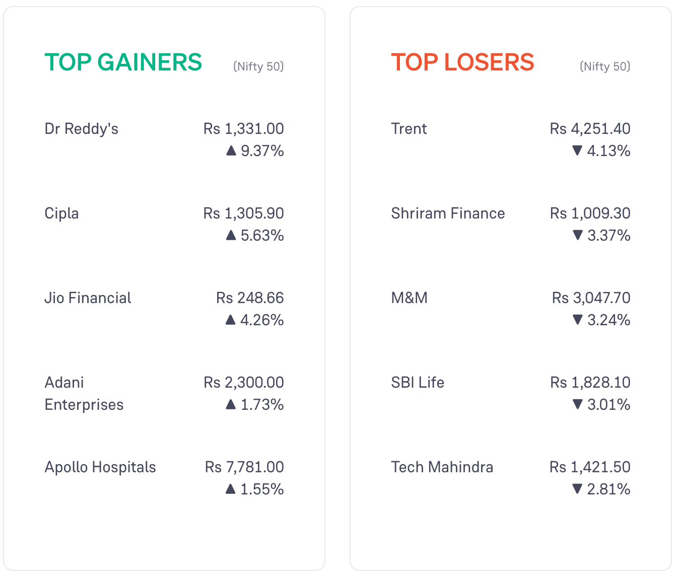 Chemicals stocks and FMCG stocks rose the most today. IT stocks and private bank stocks fell the most.