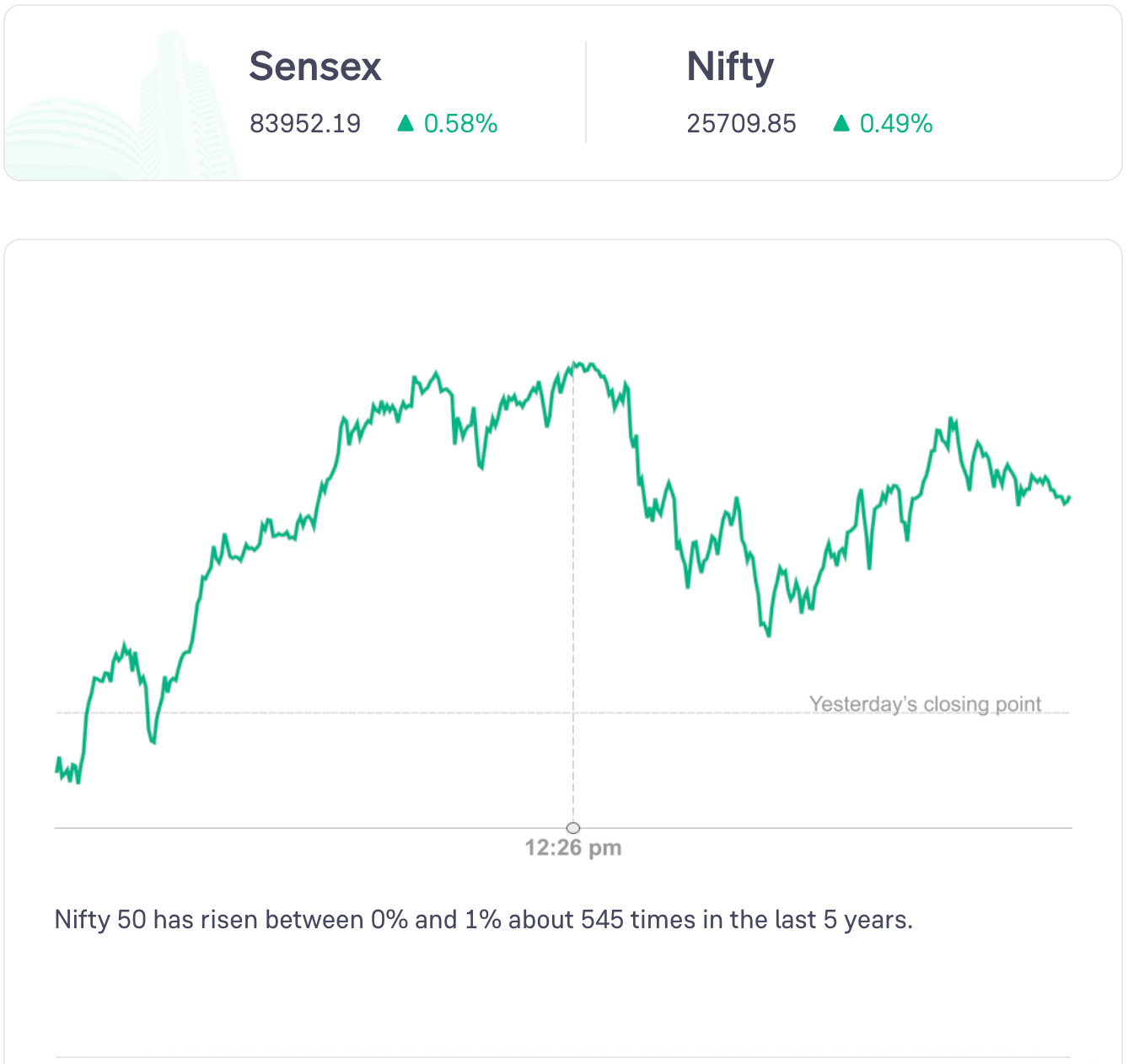 Nifty 50 rose in the first half of the day and closed in the green.