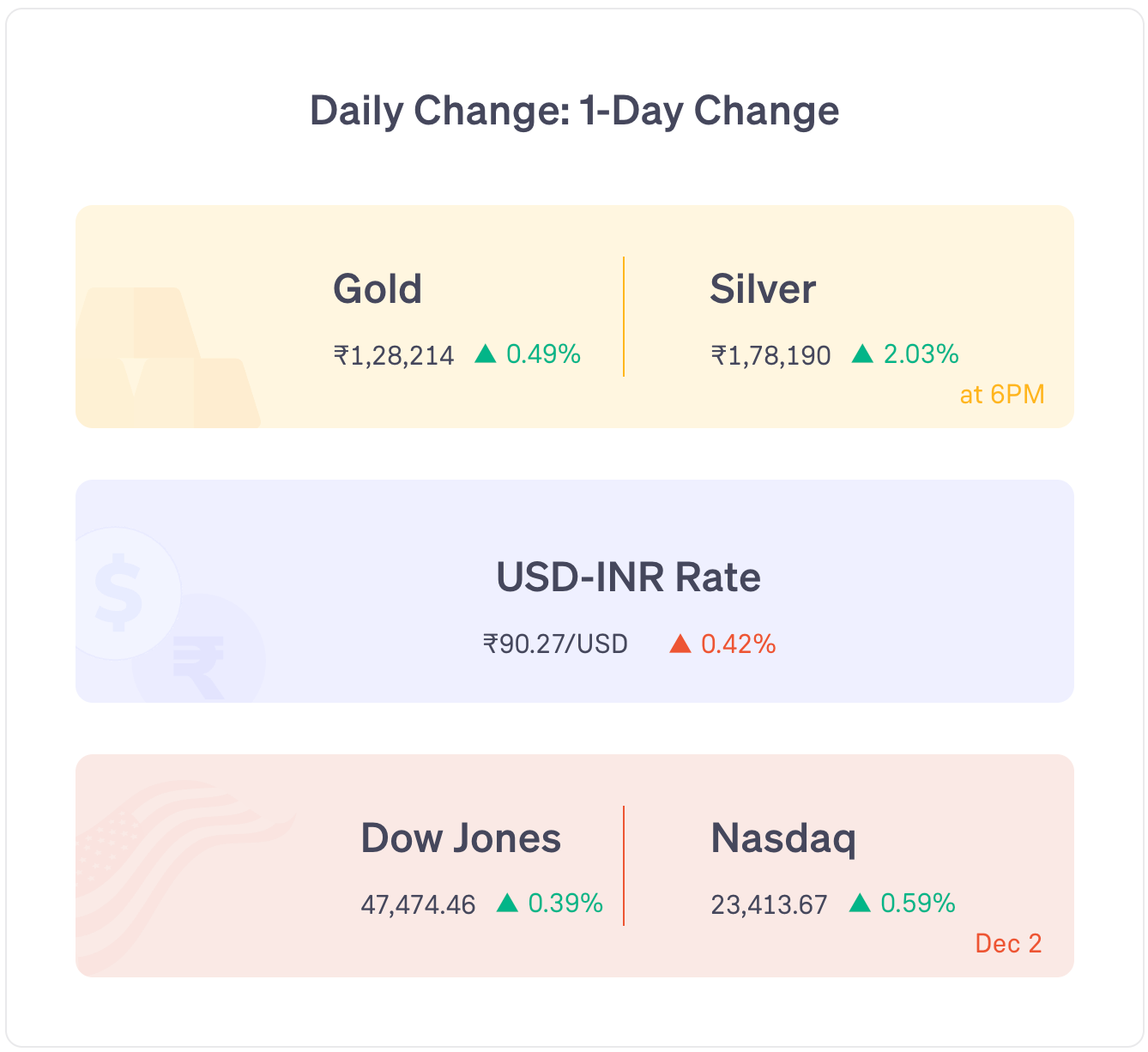 India’s composite PMI (manufacturing + services) fell to 59.7 in Nov (vs 60.4 in Oct). Services PMI rose to 59.8 (vs 58.9 in Oct). This means overall economic activity rose less in Nov than in Oct.