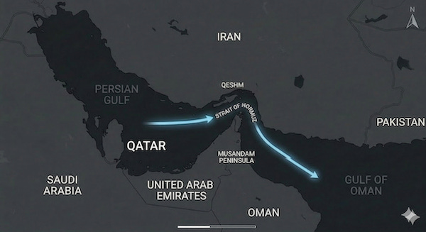 And Qatar being located in the Persian Gulf, is directly impacted by the Iran conflict. The Strait of Hormuz is not seeing much movement.