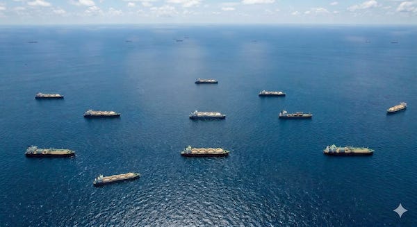Crude oil and LNG ships are currently stuck in the Strait of Hormuz due to the ongoing Iran conflict.