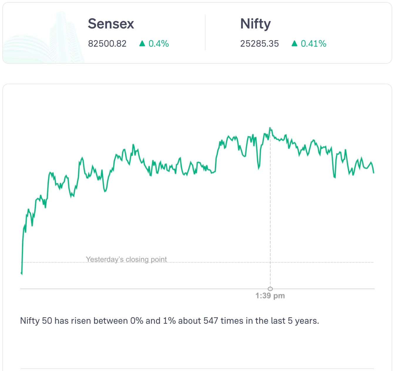 Nifty 50 rose in the first half of the day and closed in the green. The rise may have been driven by optimism over a potential US-India trade deal and positive global sentiments due to easing geopolitical tensions.