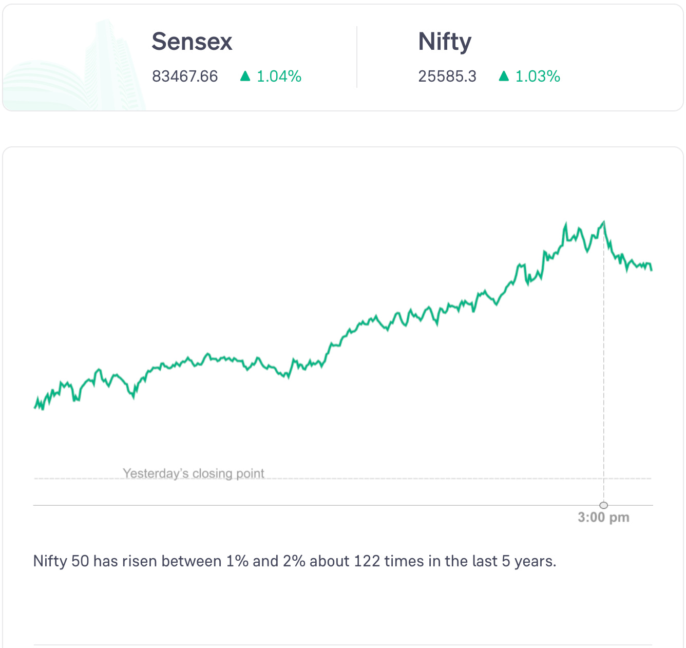 Nifty 50 rose throughout the day and closed in the green.