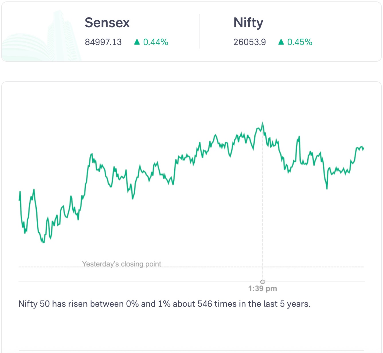 Nifty 50 rose throughout the day. The rise may have been driven by optimism over renewed hopes of a India-US trade deal after Trump made positive remarks about India. The positive sentiment was further supported by expectations of a US Fed rate cut, which is due later today.