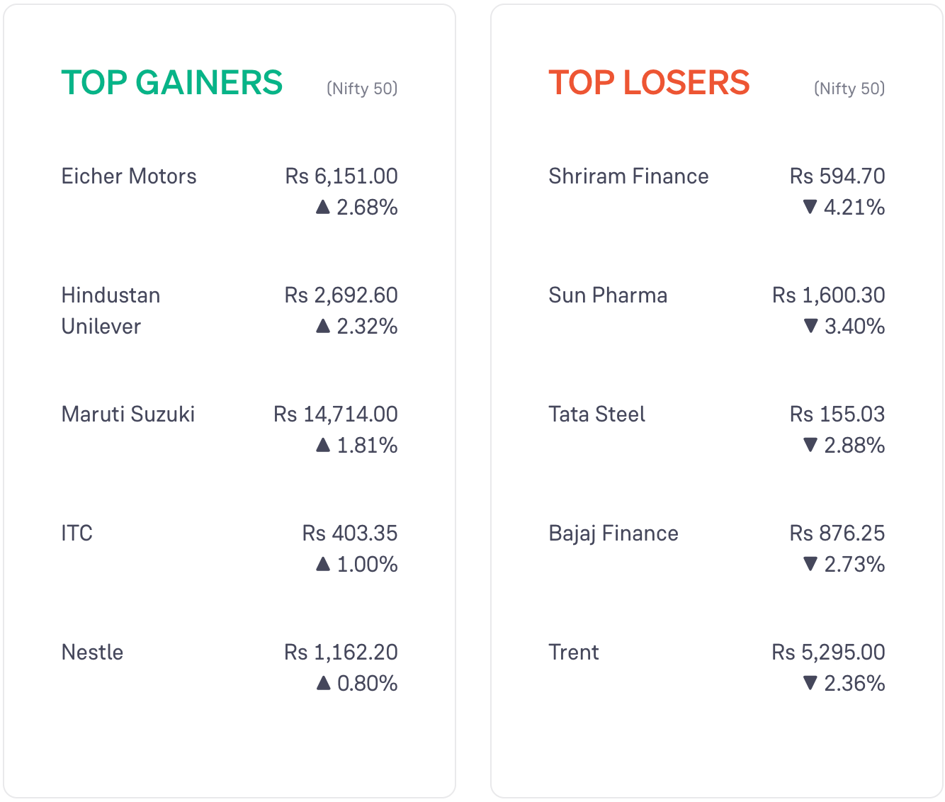 Nifty 50 fell immediately after opening and stayed in a range. This was mainly due to negative sentiments after the US issued a draft notice saying it will move forward with the extra 25% duty on Indian imports from 27 Aug.