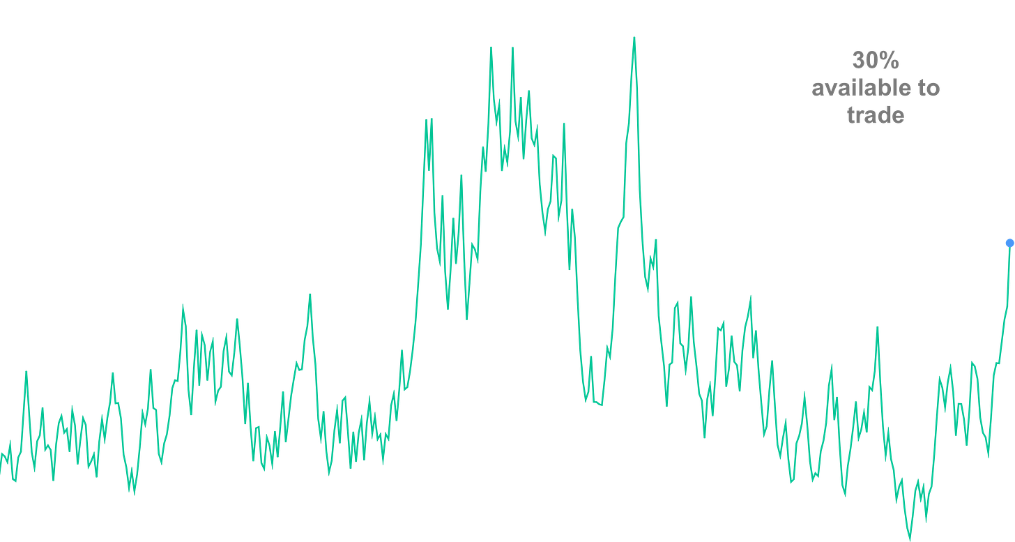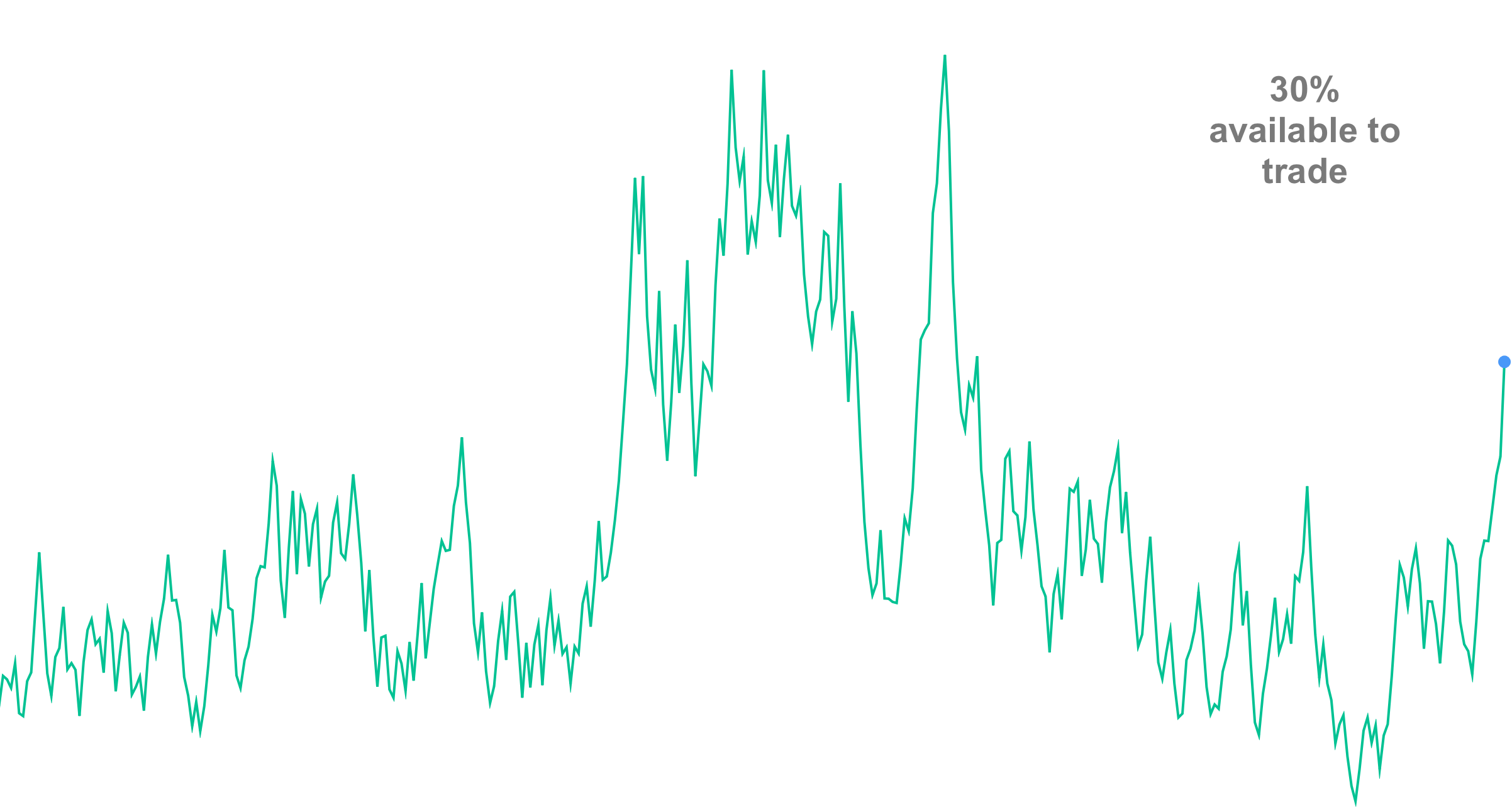 In the first simulation, we kept only 30% of the total shares in the markets. The rest were not available to trade.