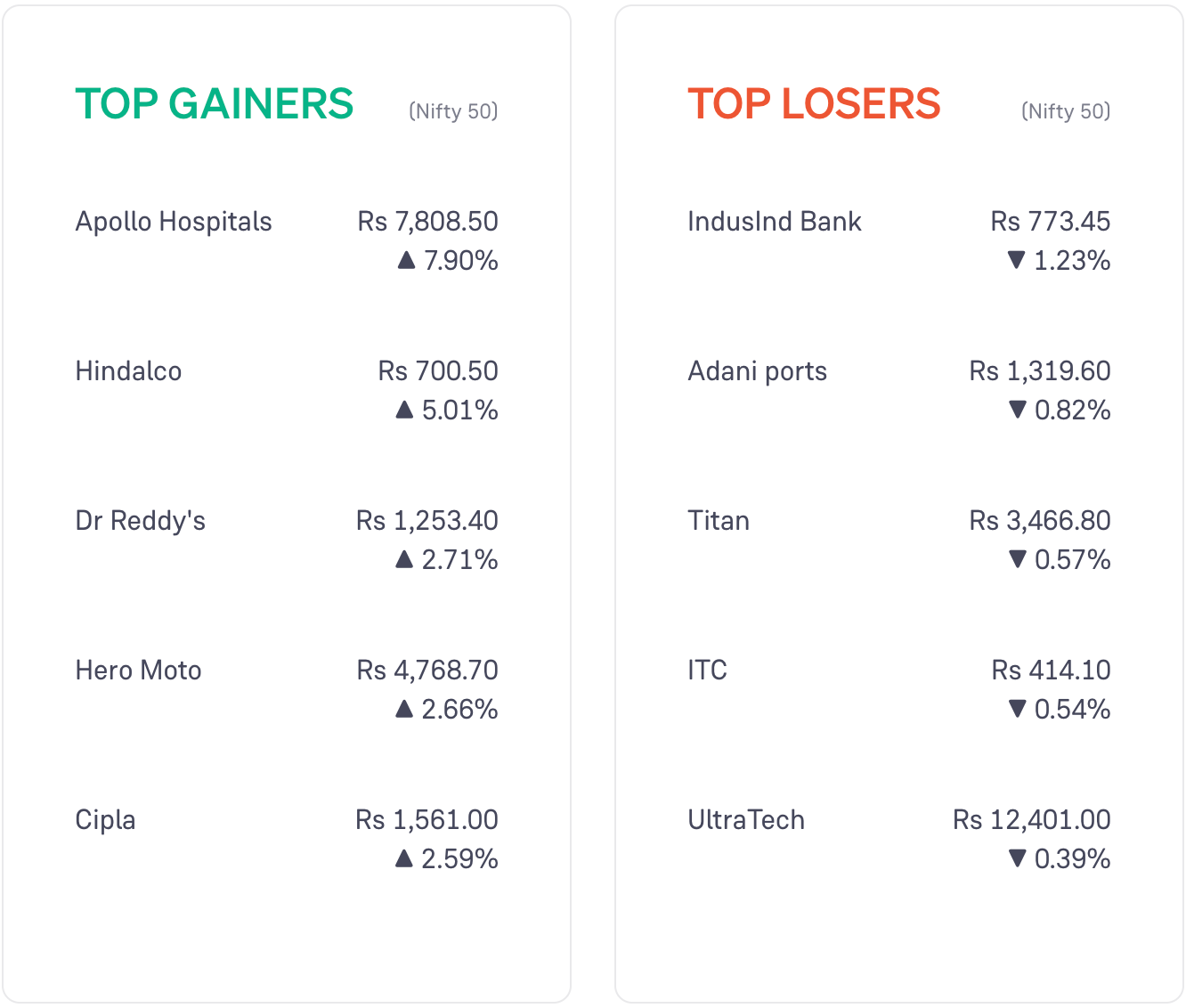 Nifty 50 closed in green. The rise was likely due to positive sentiments in the market around the falling retail inflation in India and steady US inflation data.