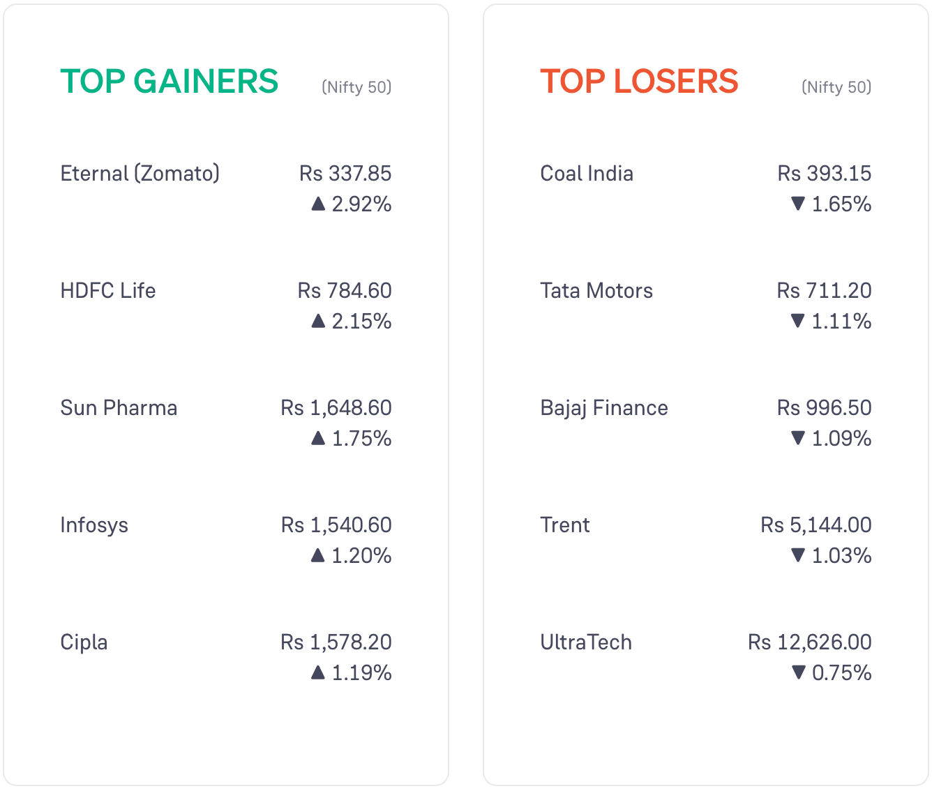 Pharma stocks and healthcare stocks rose the most today. Media stocks and PSU bank stocks fell the most.
