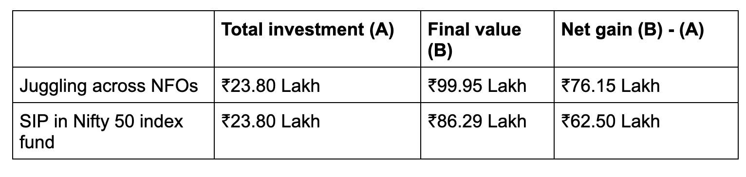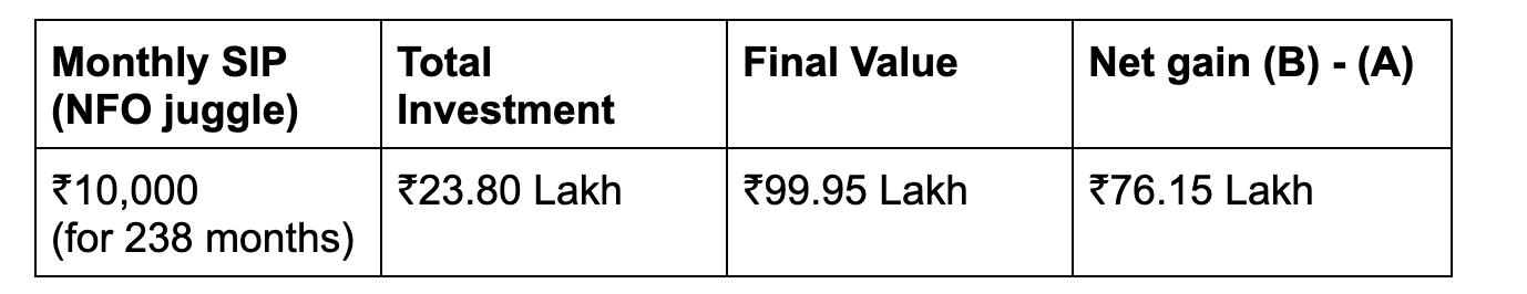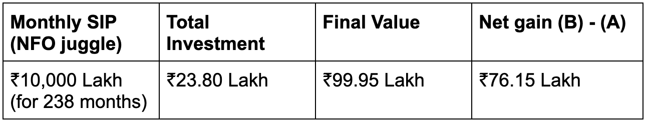 Let’s say a new mutual fund comes up and you start doing a monthly SIP in it, but only until the next NFO hits the market.