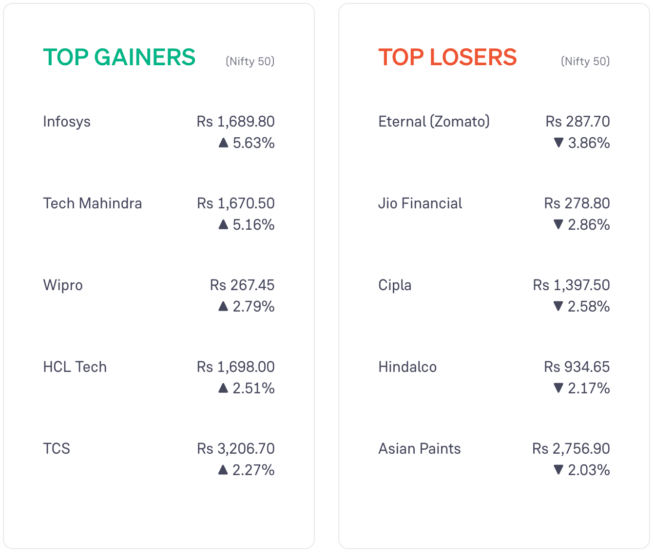 IT stocks and PSU bank stocks rose the most today. Pharma stocks and healthcare stocks fell the most.